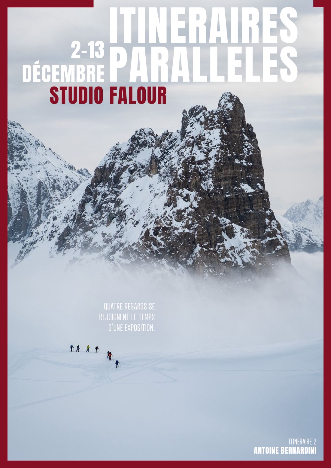 Studio Falour présente « ITINERAIRES PARALLELES » du 2 au 13 décembre 2025 Antoine Bernardini, Domiziano Ambroset, Emma Canard, Romain Van Gaver 4 regards, 4 visions du voyage. Infos...